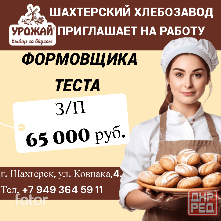 шахтерский хлебозавод приглашает на работу формовщиков теста!
