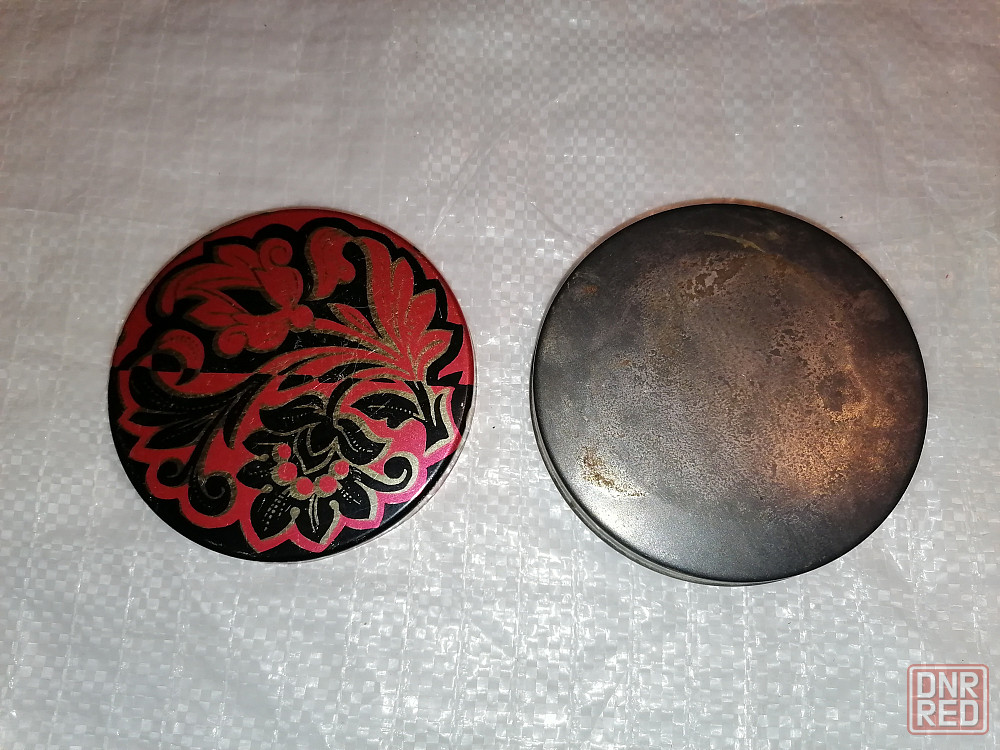 жестяная банка от конфет монпансье. ссср. размеры : диаметр 100 мм.; толщина 25 мм. б/у. состояние хорошее. доп. см. фото.