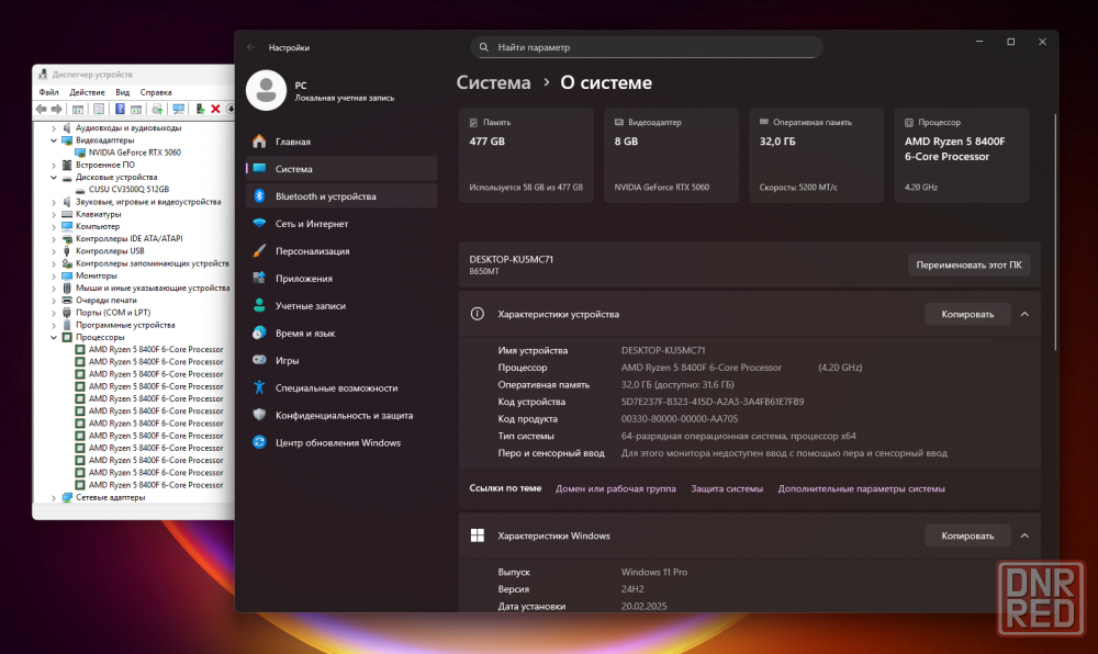 -процессор ryzen 5 8400f 6ядер/12потоков до 4,7ghz.