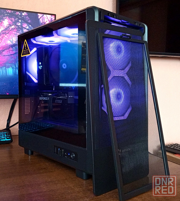 -корпус c закаленным стеклом сбоку, нижний, верхний и фронтальный пылевой фильтр + 5шт argb 120мм вентилятора возможность изменять цвет подсветки и обороты вентиляторов.