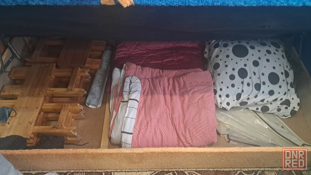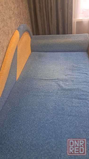 продается кровать-диван в хорошем состоянии. обивка синего цвета из ткани, с легким износом на подлокотниках и задней стенке. диван оснащен вместительным ящиком для хранения белья. размеры спального места: длина 90 см, ширина 200 см. общая ширина дивана составляет 220 см, глубина — 90 см. каркас надежный, все механизмы работают исправно. отличный вариант для гостиной или спальни.